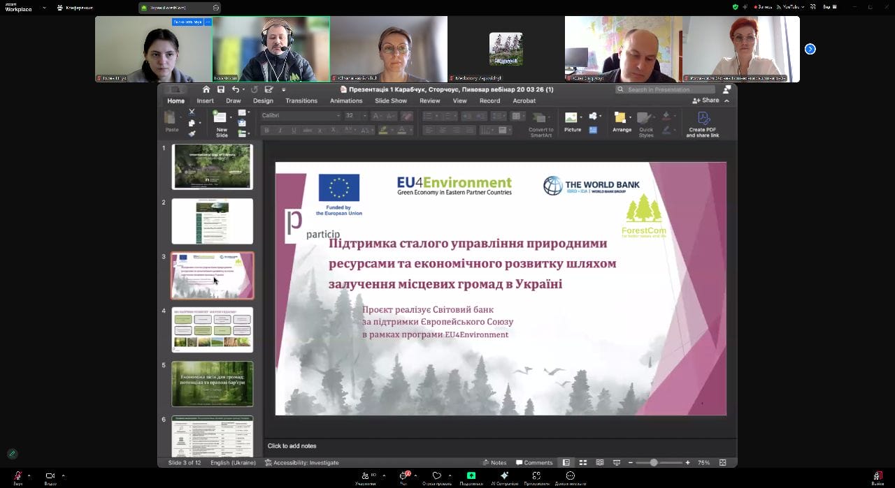 Напередодні Міжнародного дня лісів наші працівники взяли участь у вебінарі "Як ліс впливає на економічний розвиток громад?", організованому ГО "ЛІіС".